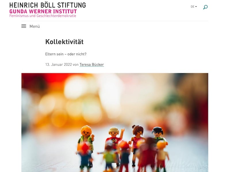 Das 'Gunda Werner Institut für Feminismus und Geschlechterdemokratie' der Heinrich Böll Stiftung veröffentlicht einen Artikel (Kollektivität; Eltern sein – oder nicht?) von Teresa Bücker aus dem Handbuch "Feministische Perspektiven auf Elternschaft". Als vertiefende Literatur wird im Artikel ausdrücklich J. Dürrholz' Buch 'Die K-Frage' empfohlen.