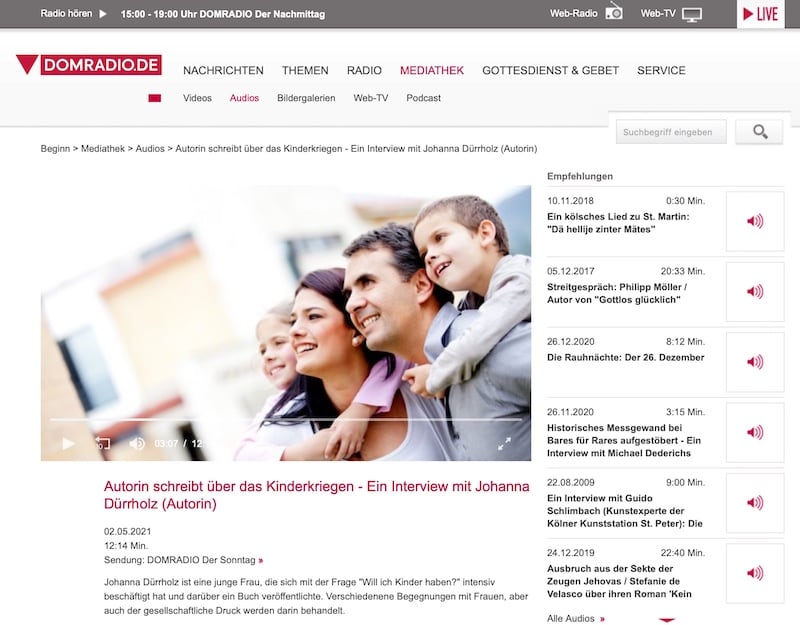 Das Interview des Domradios Köln mit Johanna Dürrholz wurde im Rahmen einer Sendung zum Oberthema "Schöpfung" geführt. Das Interview ist auf der Webseite anzuhören.