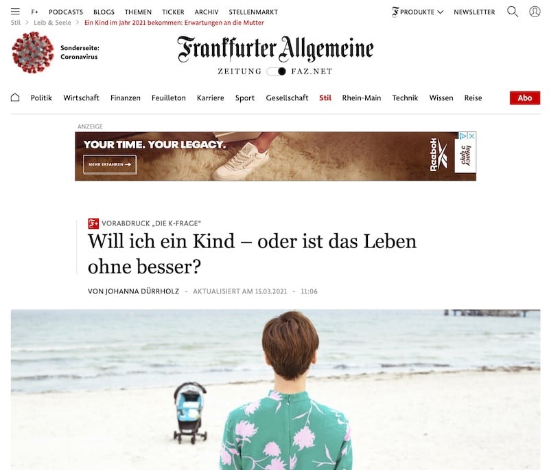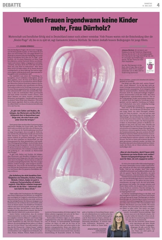 Die Printausgabe der "Frankfurter Allgemeinen Sonntagszeitung", für die Johanna Dürrholz in der Abteilung 'Leben' schreibt, bringt einen Vorabdruck des Buches, der auf große Resonanz stößt. Auch auf FAZ.NET ist der Artikel zu lesen: