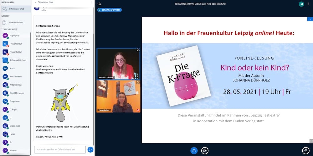 Im Rahmen einer Online-Lesung stellte Johanna Dürrholz ihr Buch einer interessierten Online-Zuhörerschaft vor. Der Lesung folgte im Chat eine interessante Frage- und Diskussionsrunde, für die die Autorin herzlich dankt.