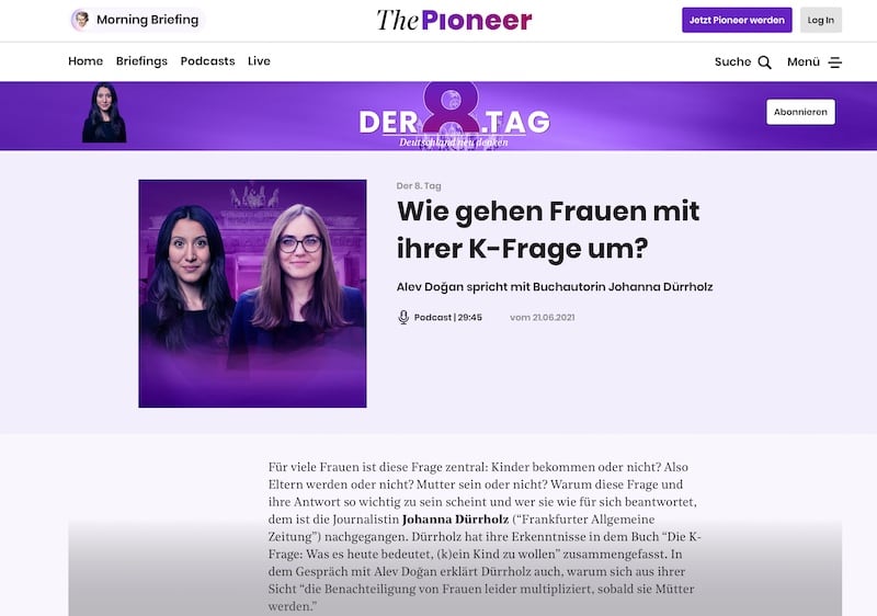 Johanna Dürrholz im Gespräch mit Alev Dogan, Chefreporterin der Medienplattform "ThePioneer", einem von Gabor Steingart gegründeten exklusiven Medien-Start-up.