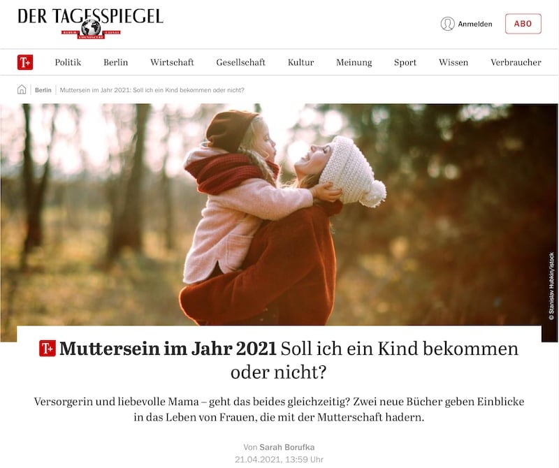 Das Buch wird in einem Themenbeitrag "Muttersein im Jahr 2021" von Sarah Borufka vorgestellt.